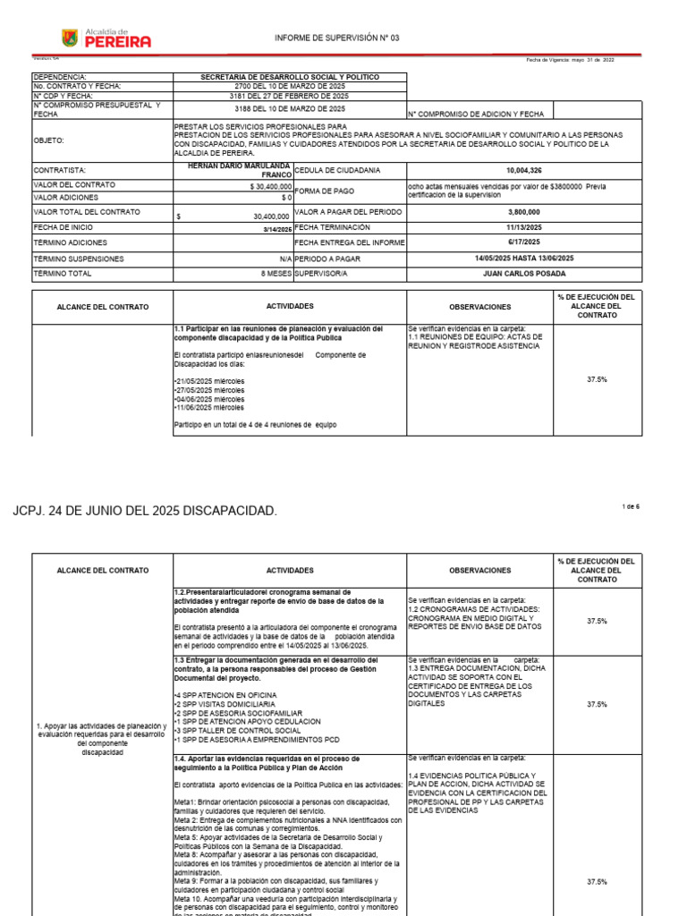 Cumpliendo con lo estipulado en el numeral 08 del Decreto 587 de abril de 2022, por medio del cual se adopta el Manual de supervision e interventoria para el sector central del Municipio de
