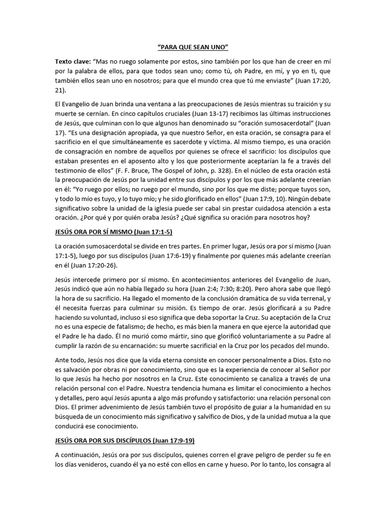 Texto clave: “Mas no ruego solamente por estos, sino también por los que han de creer en mí