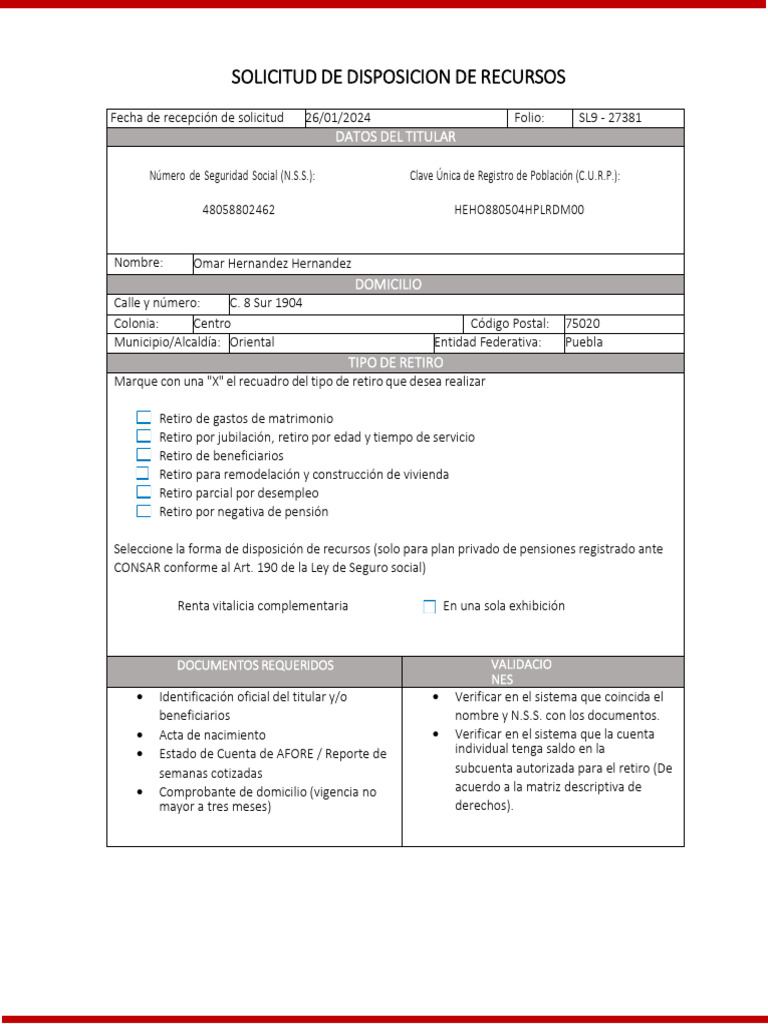 Para cualquier solicitud de disposición o transferencia de recursos de la cuenta individual, deberá