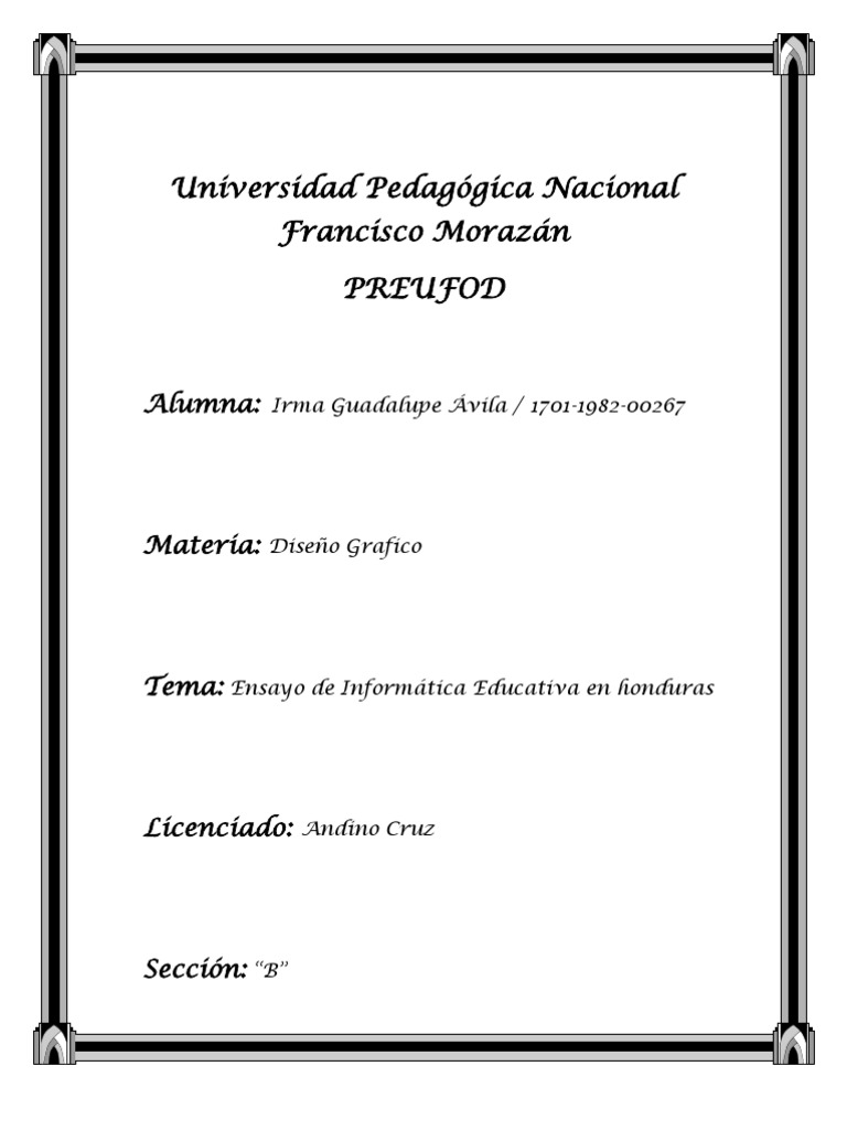 2. Programa de Infopedagoga: herramientas informticas que como docentes podemos utilizar o implementar en el proceso enseanza-aprendizaje. 3. Las tecnologas de la informacin (TIC): son las herramientas utilizadas para transmitir ya sea a larga o corta distancia ejemplo el internet, 4. Informatizacin de la Sociedad. Por medio de esta podemos aprender y manipular informacin la que nos puede servir para mejorar el trabajo donde laboramos 5. Actualidad en Honduras: honduras debe dedicar ms esfuerzos a la enseanza de la informtica por ser una actualidad que va en crecimiento da a da, si los jvenes no son preparados conforme la globalizacin lo requiera, presentaran desventaja ante un requerimiento casi obligatorio. 6. Aportes de la informtica de la educacin. Es importante porque por medio de ella nos podemos asociar con diferentes personas