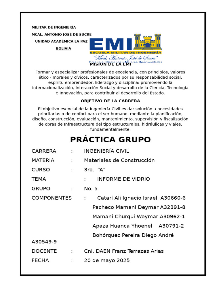 TEMA : INFORME DE VIDRIO