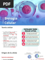Brown: descubre el ncleo de la clula. Schleiden y Schwan: teora celular. Ruska: construye el microscopio electrnico de transmisin. Teora celular. 1) Todos los seres vivos estn formados por clulas (unidad morfolgica). 2) La clula es capaz de realizar todos los procesos necesarios para permanecer con vida (unidad fisiolgica). 3) Todas las clulas proceden de clulas prexistentes (Virchow, divisin celular). 4) La clula contiene toda la informacin gentica y es capaz de transmitirla (unidad gentica). Tipos de organismos. 1) Unicelulares: microrganismos que cumplen todas las funciones vitales (bacterias, hongos). 2) Pluricelulares: formado por millones de clulas con una especializacin especfica (animales, vegetales). 3) Colonias: agrupaciones de seres de la misma o diferente especie, donde cada una realiza sus funciones vitales. Unidas viven ms que solas (corales, esponjas). Forma y funcin. 1) Clulas contrctiles: suelen ser alargadas (clulas musculares). 2) Clulas con finas prolongaciones: se conectan para formar redes de informacin (neuronas). 3) Clulas con micro vellosidades o pliegues: amplan la superficie de contacto y de intercambio de sustancias (clulas intestinales; absorcin de nutrientes). 4) Clulas cbicas, prismticas o aplanadas: recubren superficies como lozas de pavimentos (C. epiteliales). 5) Clulas sensoriales: clulas especficas. 5.a) Clulas ciliadas: se encuentran en el odo y son las detectoras primarias del sonido. Producen cascadas de informacin hasta que sta llega al cerebro. 5.b) Bastones: se encuentran en la retina del ojo y estn especializados para responder a la luz. La luz provoca una seal elctrica que se transmite hasta las clulas nerviosas del ojo, las cuales envan la seal hasta el cerebro. 6) Clulas germinales: Estas clulas contienen el material gentico. 6.a) vulo: su funcin es que al ser fecundado tenga todos los nutrientes para entregar al nuevo ser. 6.b) Espermatozoide: debe ser rpido, por ello tiene una cola alargada y una cabeza pequeita (ncleo). 7) Clulas que no tienen forma fija: necesitan ser muy flexibles para fagocitar cuerpos extraos (macrfagos, fagocitos). Caractersticas estructurales. Todas las clulas estn rodeadas de una membrana celular que las separa y comunica con el exterior. Las clulas vegetales y las bacterias poseen una pared celular que rodea a la membrana plasmtica. Contienen un medio hidrosalino, el citoplasma, que forma la mayor parte del volumen celular y sostiene los organelos. Todas las clulas tienen material hereditario: ADN. Clulas Eucariotas. 1) Animal: no tiene pared celular ni posee cloroplastos, slo posee vacuolas pequeas. Es de forma irregular. 2) Vegetal: tiene una pared celular al exterior de la membrana plasmtica. Frecuentemente tiene cloroplastos, los cuales contienen clorofila, posee una vacuola grande y central que almacena agua. Generalmente es de forma regular. Biomembrana. Est formada por una bicapa de lpidos, fosfolpidos, protenas y carbohidratos. Rodea a la clula marcando el lmite entre el contenido celular y el medio externo (barrera de permeabilidad). Regula el trnsito de sustancias y define los compartimientos y organelos que permite mantener las diferencias entre el contenido y el citosol.