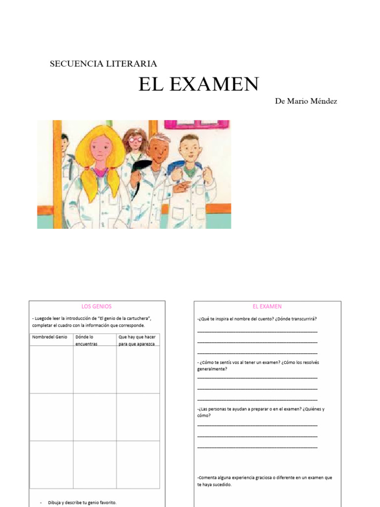 - Luegode leer la introducción de “El genio de la cartuchera”, -¿Qué te inspira el nombre del cuento? ¿Dónde transcurrirá?