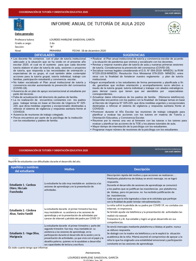 INFORME ANUAL DE TUTORÍA DE AULA 2020