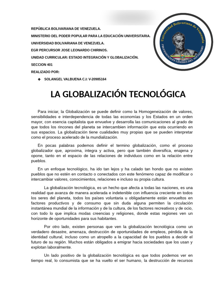 Para concluir, debemos tomar el Tema de la Globalización tecnológica más como