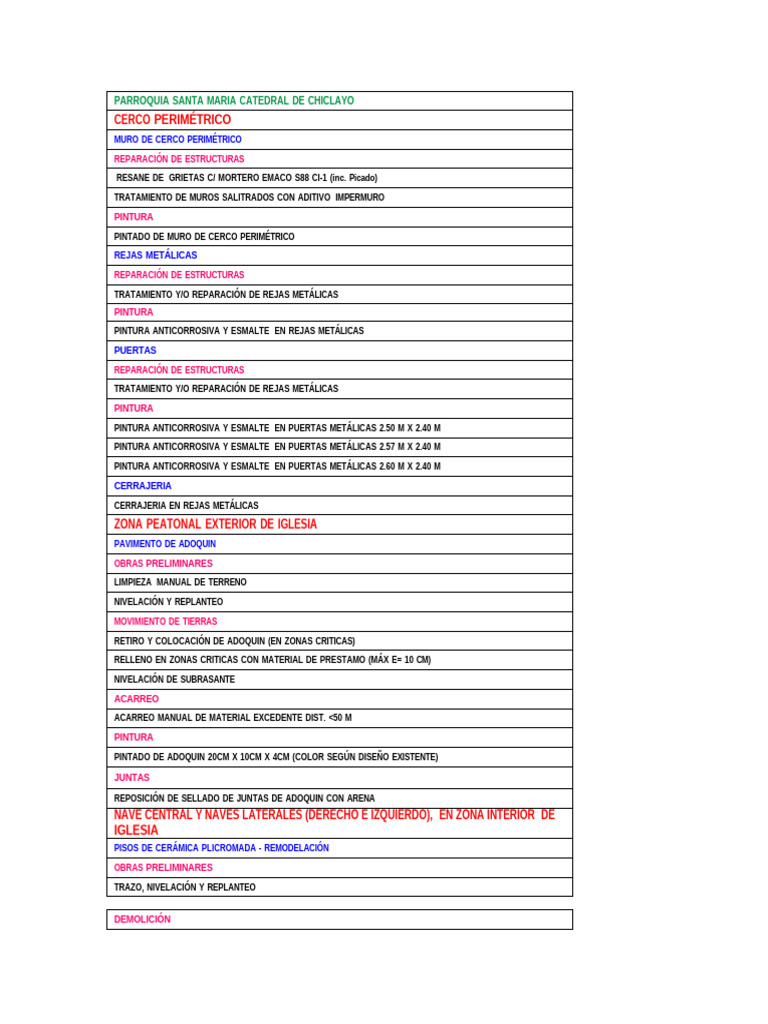 FACHADAS (ZONA EXTERIOR DE IGLESIA)