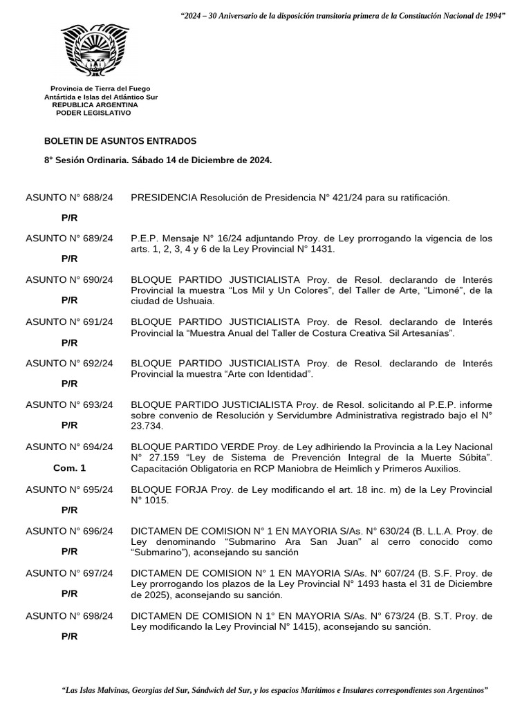 8° Sesión Ordinaria. Sábado 14 de Diciembre de 2024.