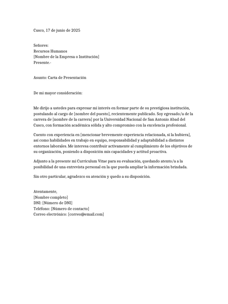 postulando al cargo de [nombre del puesto], recientemente publicado. Soy egresado/a de la