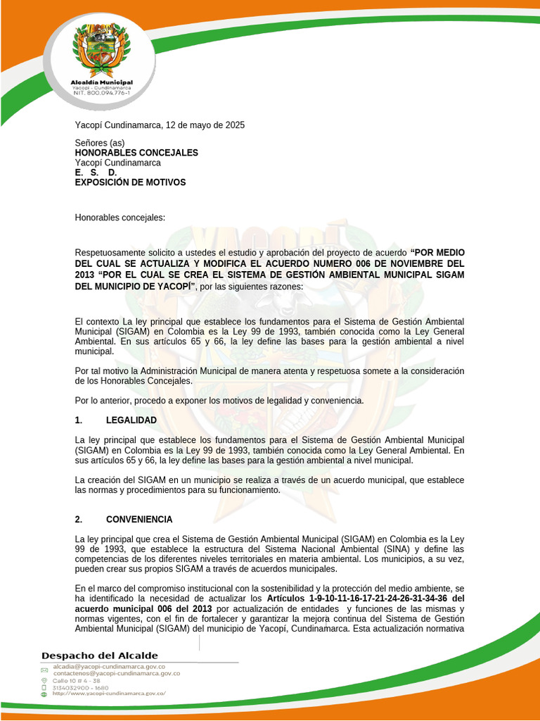 Ambiental Municipal (SIGAM) del municipio de Yacopí, Cundinamarca. Esta actualización normativa