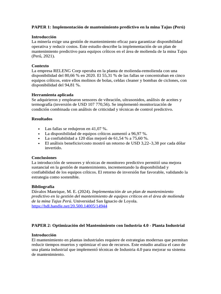 PAPER 1: Implementación de mantenimiento predictivo en la mina Tajus (Perú)