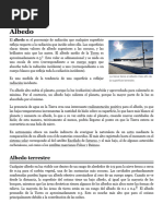1.1 ¿Qué es el albedo? ¿Cuáles son las superficies naturales de la Tierra que tienen un albedo alto y