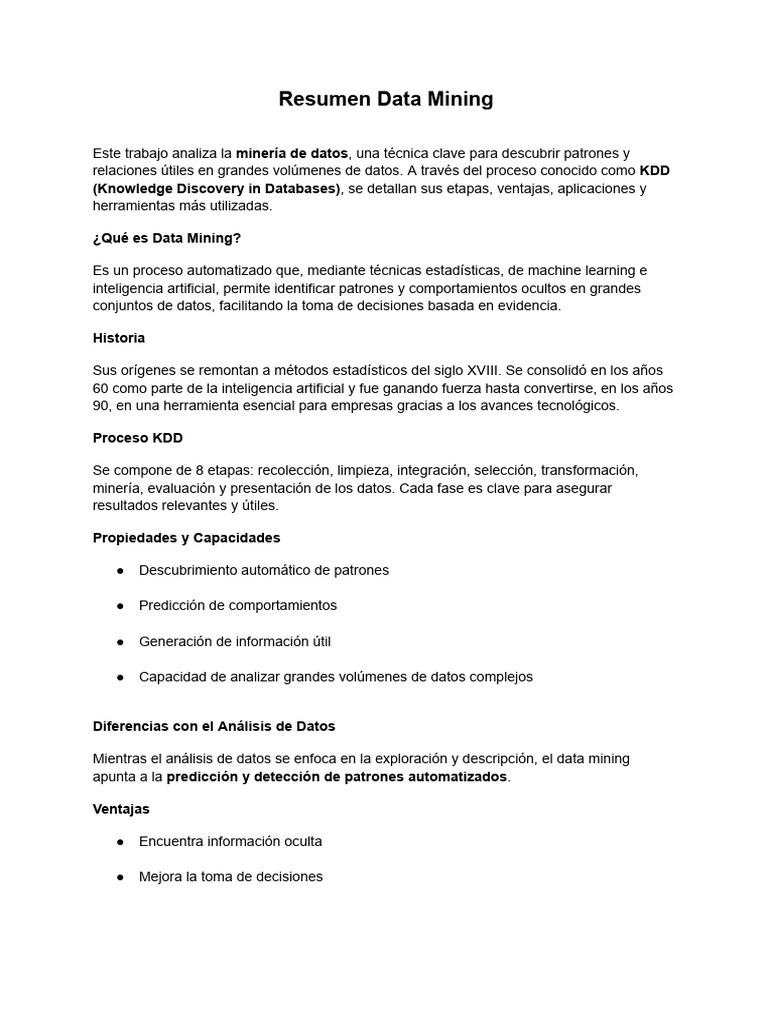 Este trabajo analiza la minería de datos, una técnica clave para descubrir patrones y
