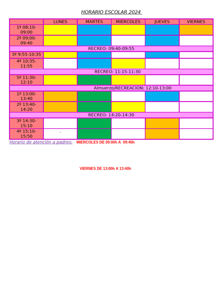 HORARIO ESCOLAR 2024