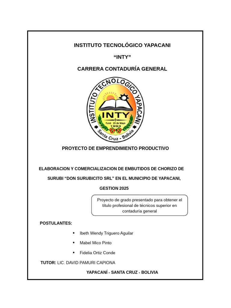 Municipio de Yapacaní, contamos con la capacidad y el conocimiento de elaborar este producto