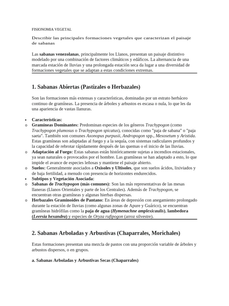 o Gramíneas Dominantes: Predominan especies de los géneros Trachypogon (como