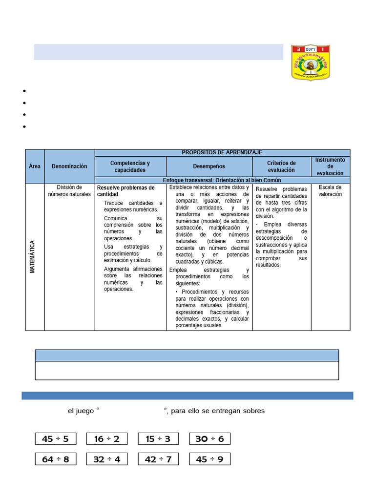 • Resuelven otros problemas de divisiones en situaciones cotidianas.