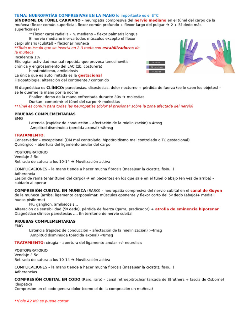 TEMA: NUEROPATÍAS COMPRESIVAS EN LA MANO lo importante es el STC