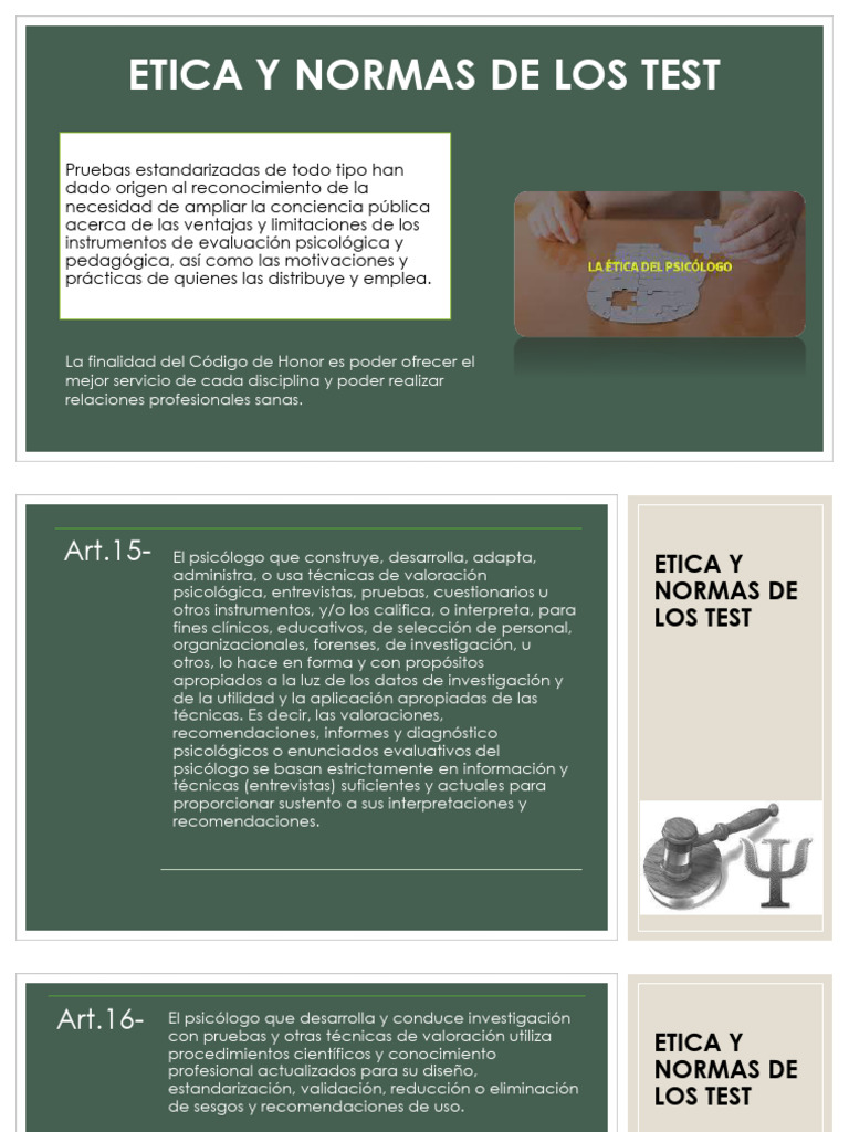 psicológica, entrevistas, pruebas, cuestionarios u NORMAS DE