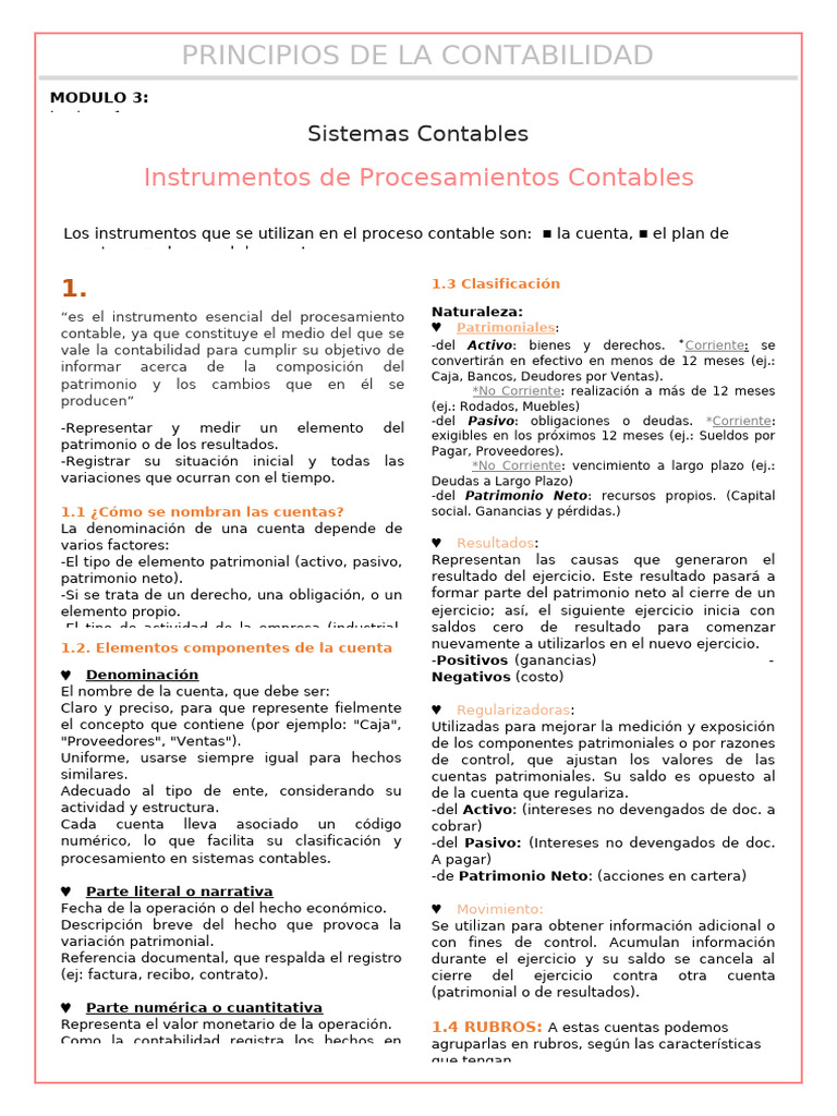 Los instrumentos que se utilizan en el proceso contable son: ■ la cuenta, ■ el plan de