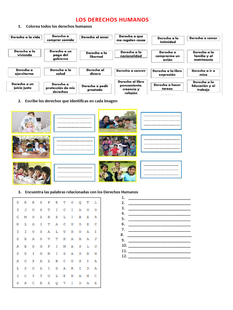 3. Encuentra las palabras relacionadas con los Derechos Humanos