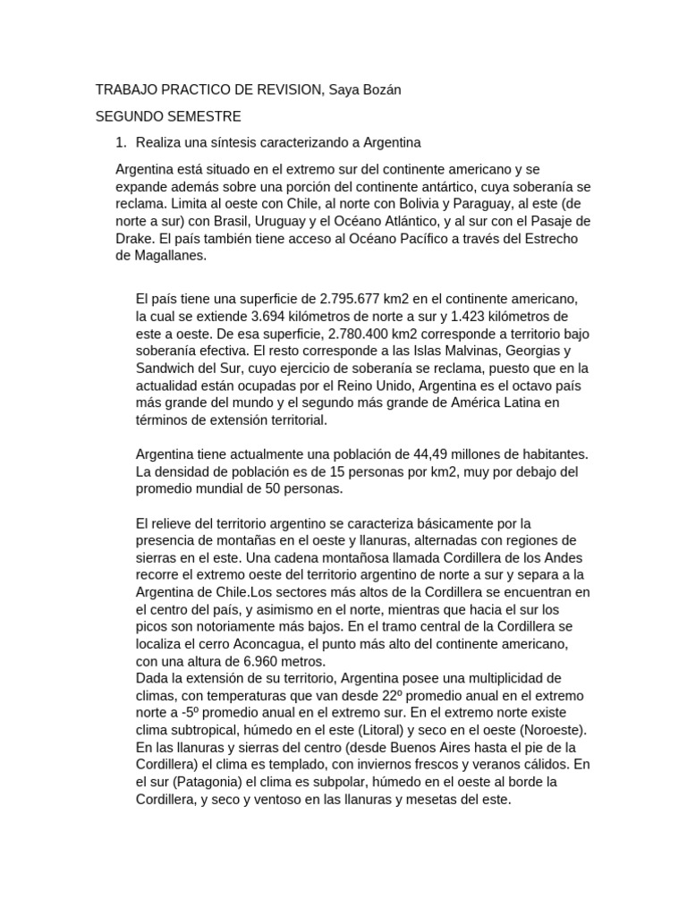 1. Realiza una síntesis caracterizando a Argentina