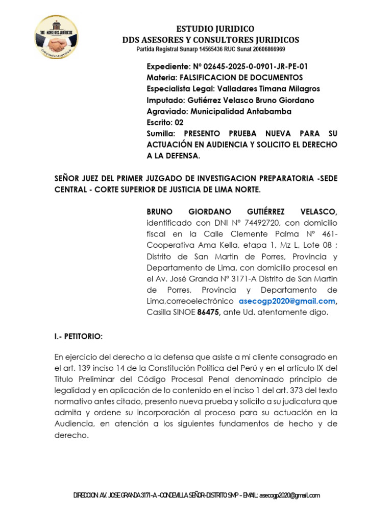 Sumilla: PRESENTO PRUEBA NUEVA PARA SU