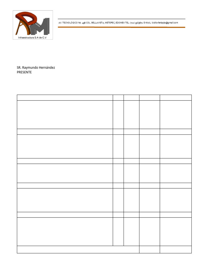Por medio del presente le hago llegar la cotización de los trabajos a realizar en casa-habitación, en
