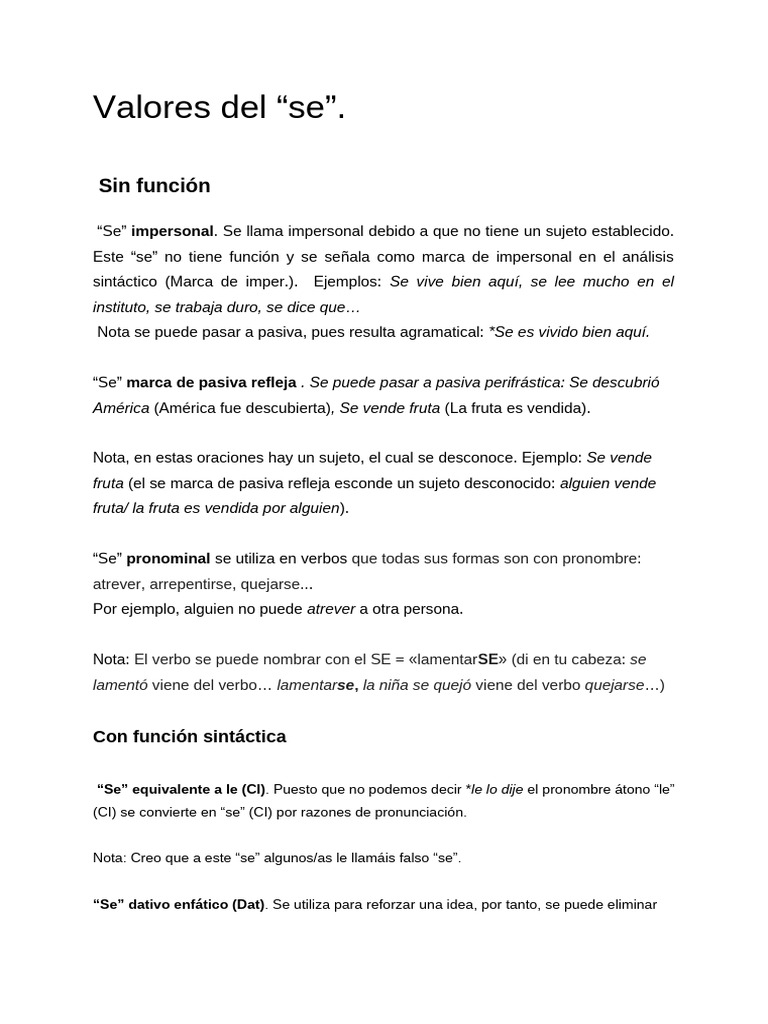 Valores del “se”.