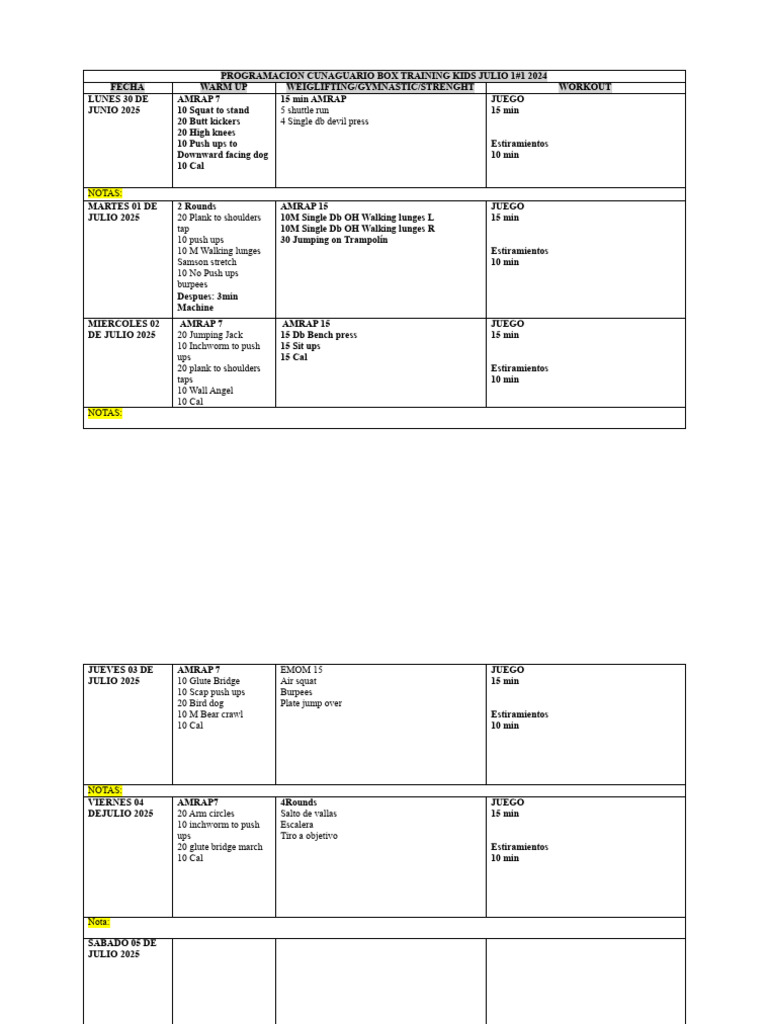 PROGRAMACION CUNAGUARIO BOX TRAINING KIDS JULIO 1#1 2024