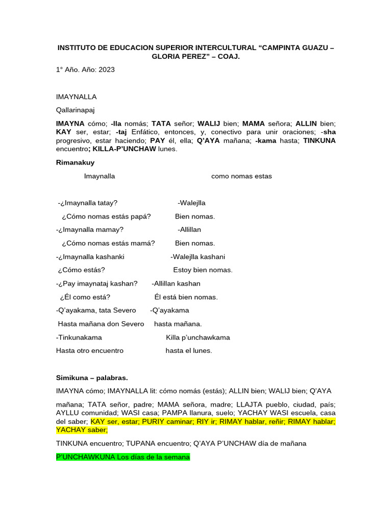 ¿Imaynallá-taj kashanki? ¿Cómo estás?