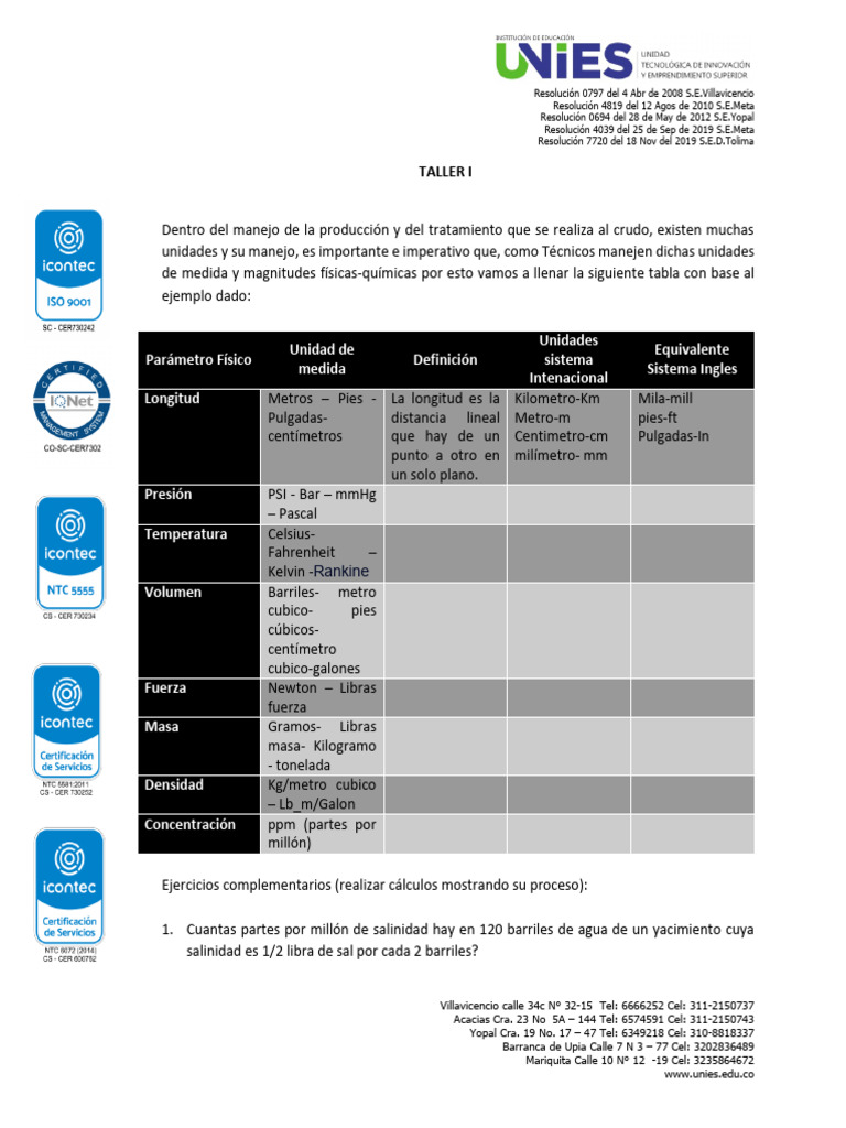 de medida y magnitudes físicas-químicas por esto vamos a llenar la siguiente tabla con base al