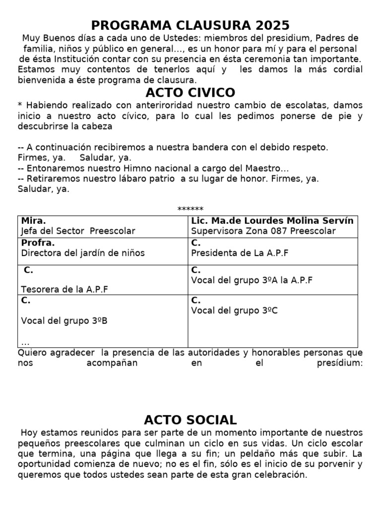 realizadas y a los niños por todo lo que aprendimos, junto con Ustedes,