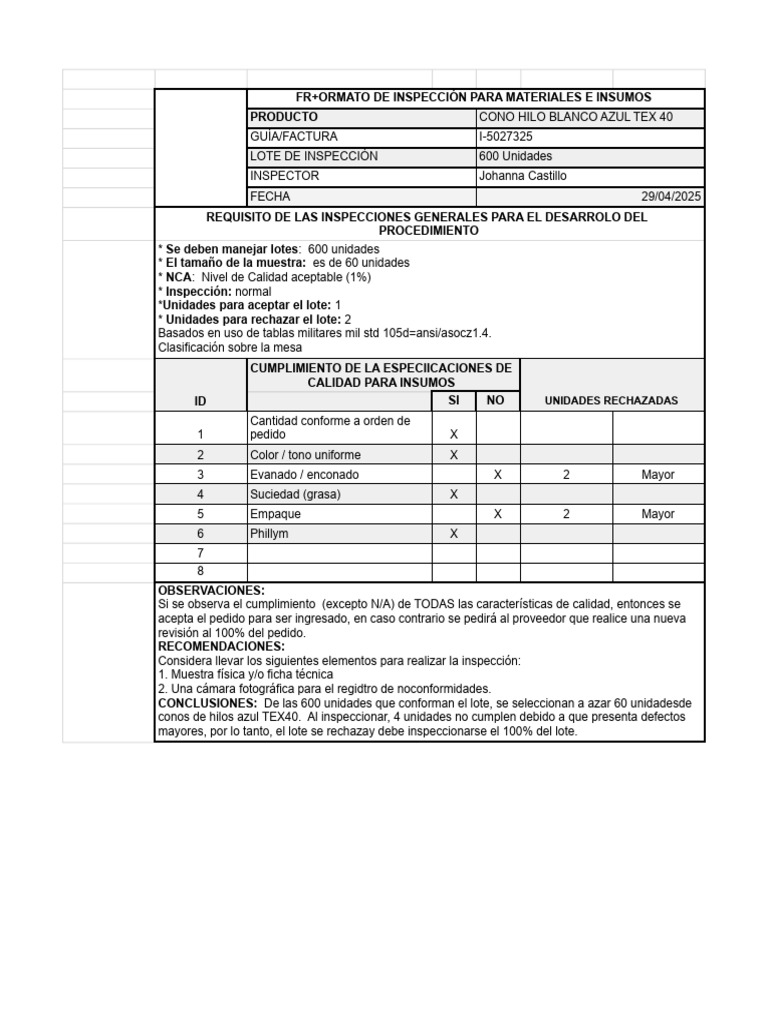 FR+ORMATO DE INSPECCIÓN PARA MATERIALES E INSUMOS