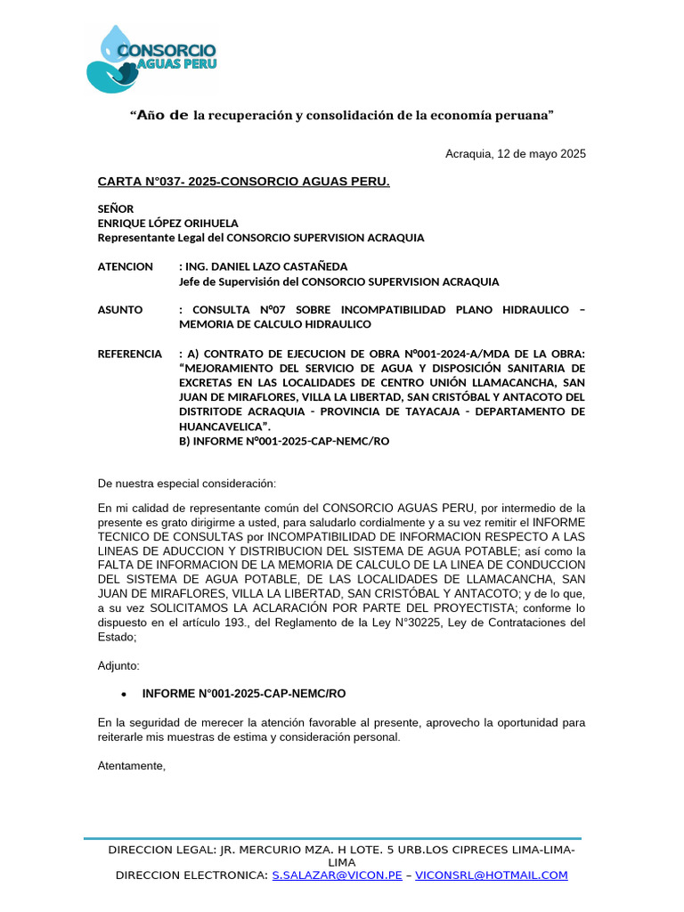 CARTA N°037- 2025-CONSORCIO AGUAS PERU.