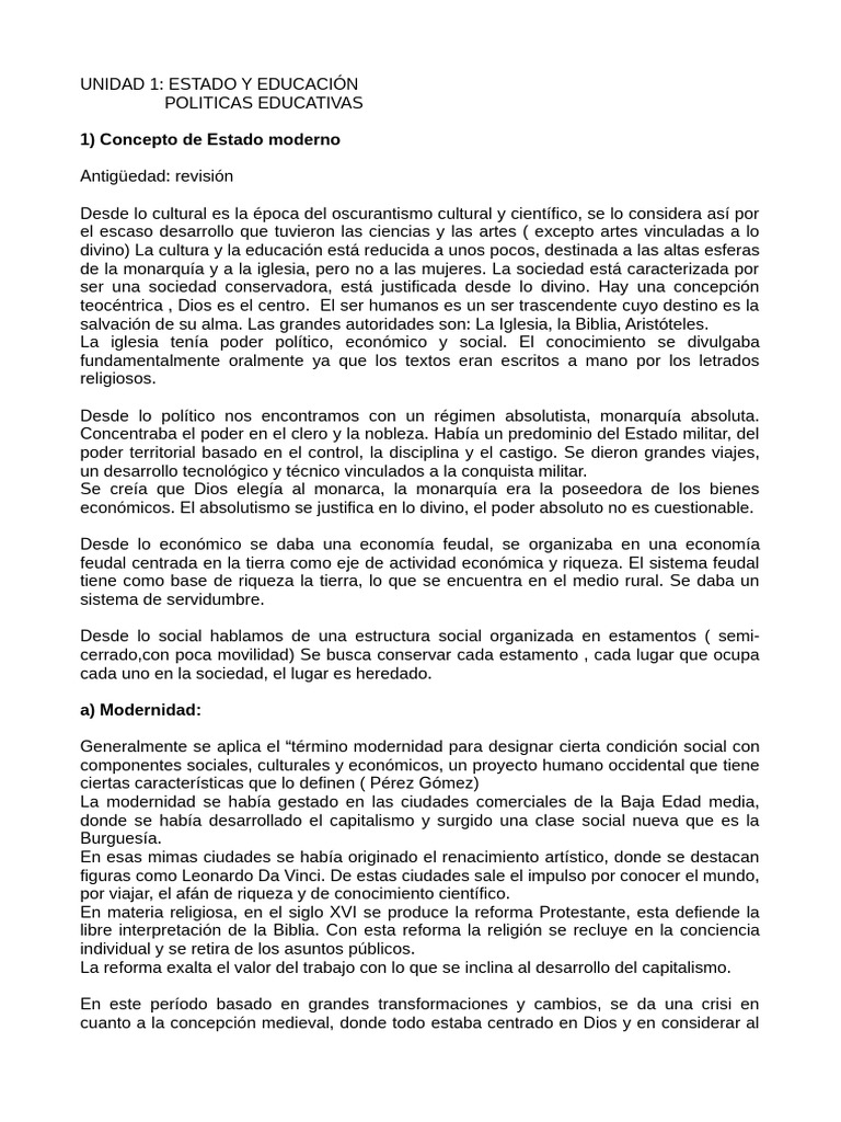 UNIDAD 1: ESTADO Y EDUCACIÓN