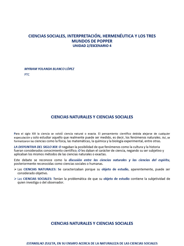 ❖ Paillié Plazas, J. C. Ciencias sociales, interpretación, hermenéutica y los tres mundos de Popper. Unidad 2 /