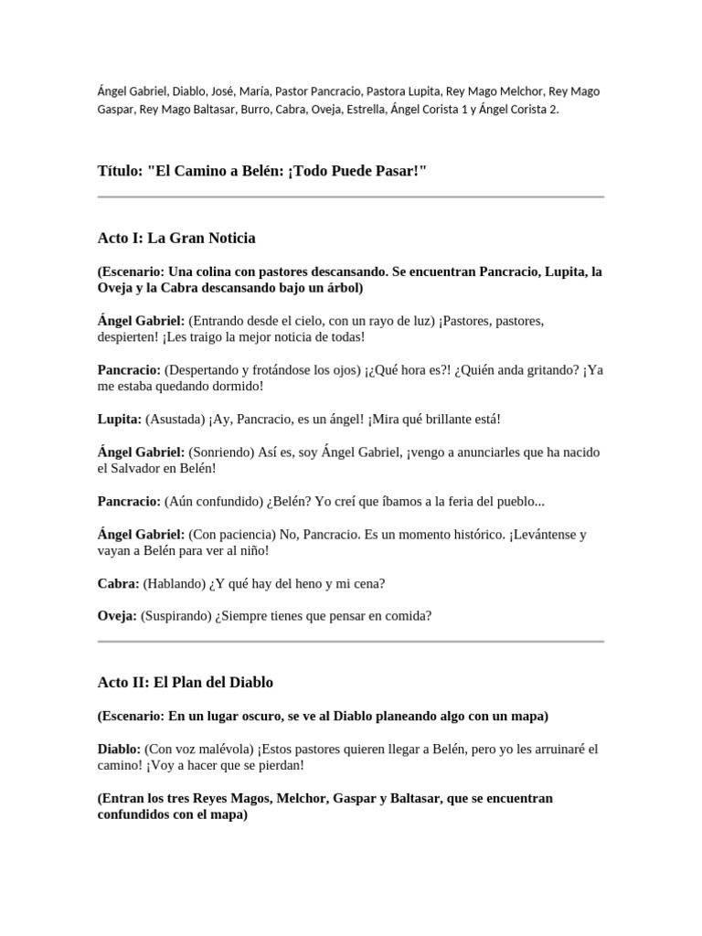 Diablo: (Con voz malévola) ¡Estos pastores quieren llegar a Belén, pero yo les arruinaré el