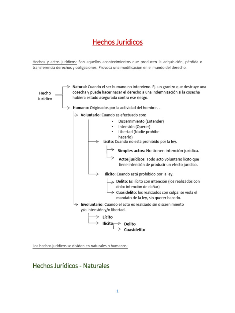Hechos y actos jurídicos: Son aquellos acontecimientos que producen la adquisición, pérdida o