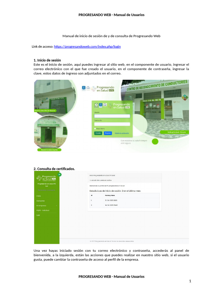 Manual de inicio de sesión de y de consulta de Progresando Web
