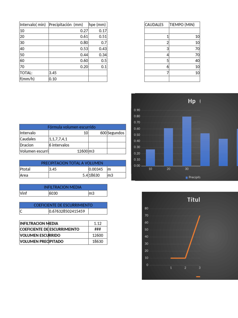 Intervalo( min) Precipitación (mm) hpe (mm) CAUDALES TIEMPO (MIN)