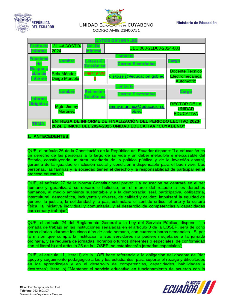 2024, E INICIO DEL 2024-2025 UNIDAD EDUCATIVA “CUYABENO”