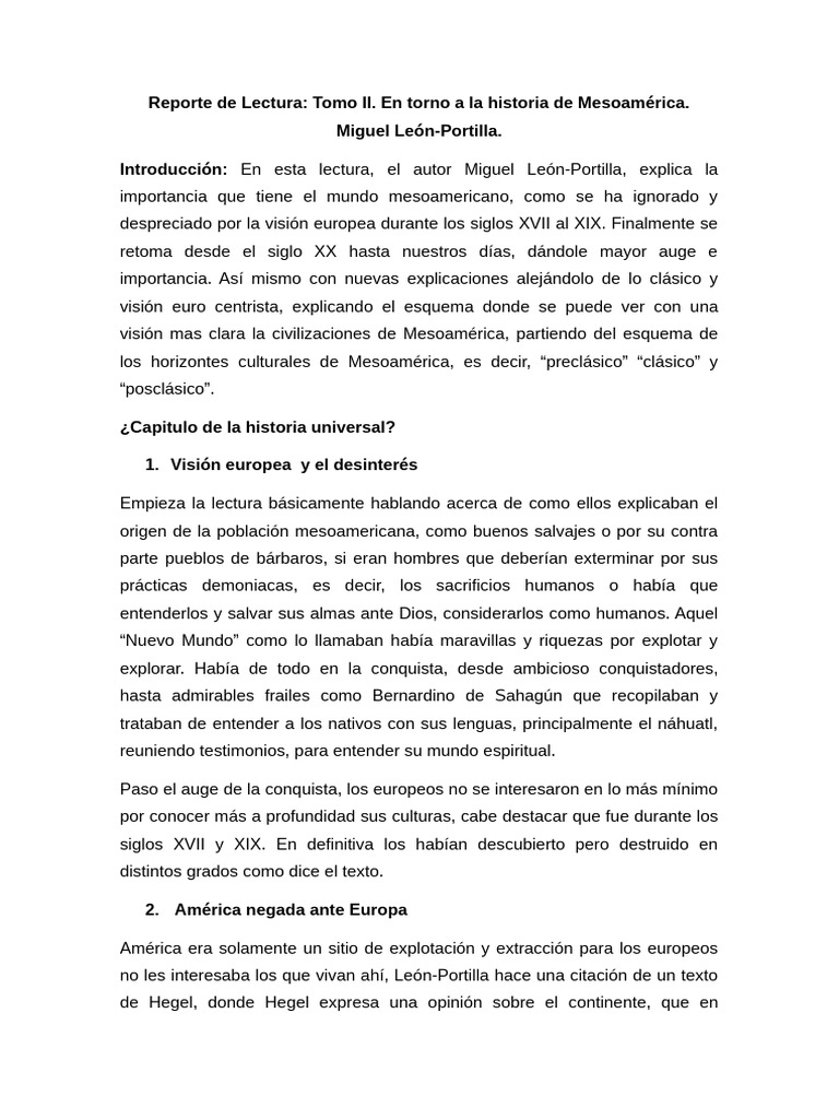 Reporte de Lectura: Tomo II. En torno a la historia de Mesoamérica.