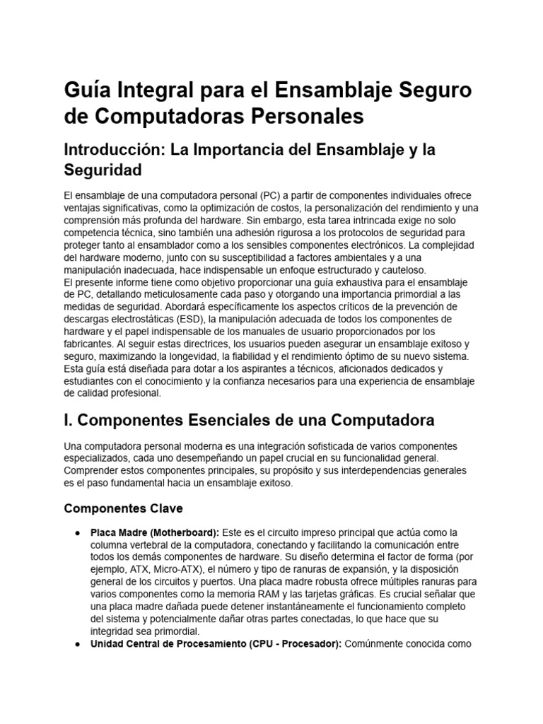 El presente informe tiene como objetivo proporcionar una guía exhaustiva para el ensamblaje