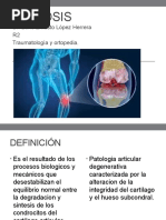 Se define como el daño del cartílago articular independiente de la causa y que se caracteriza por: