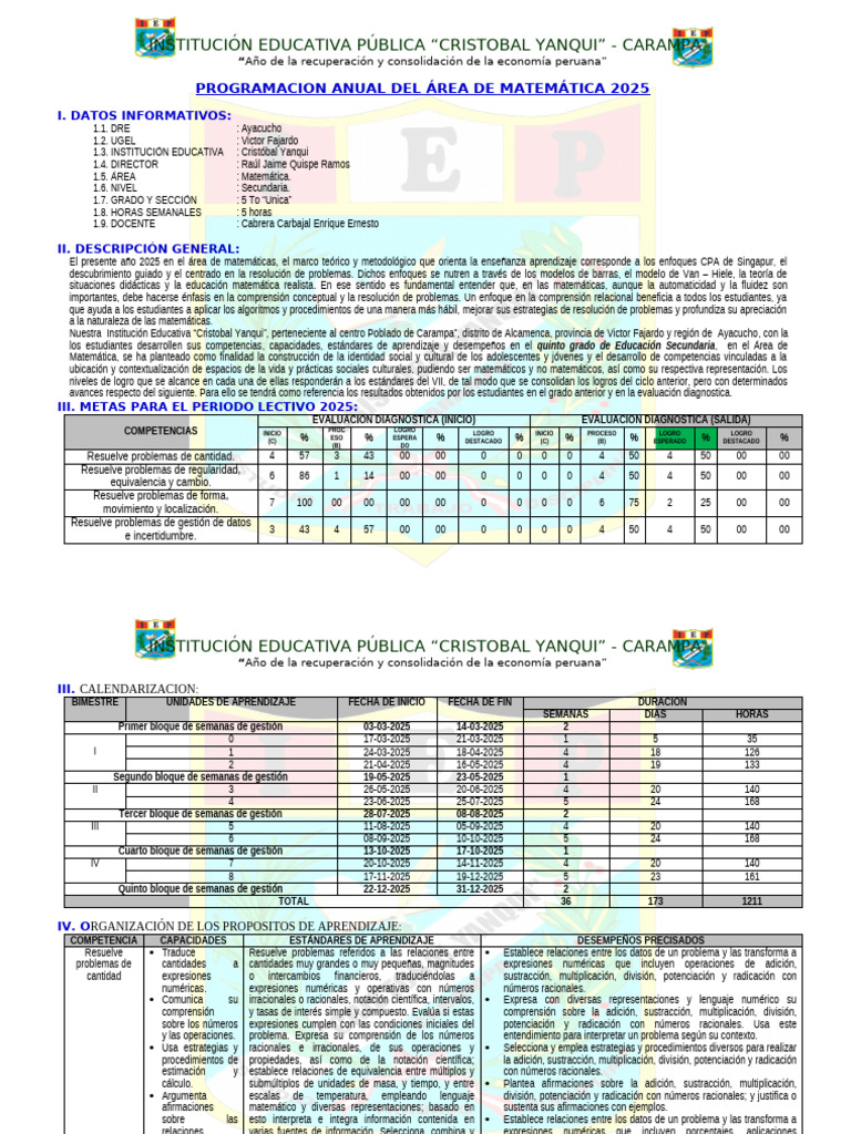 PROGRAMACION ANUAL DEL ÁREA DE MATEMÁTICA 2025