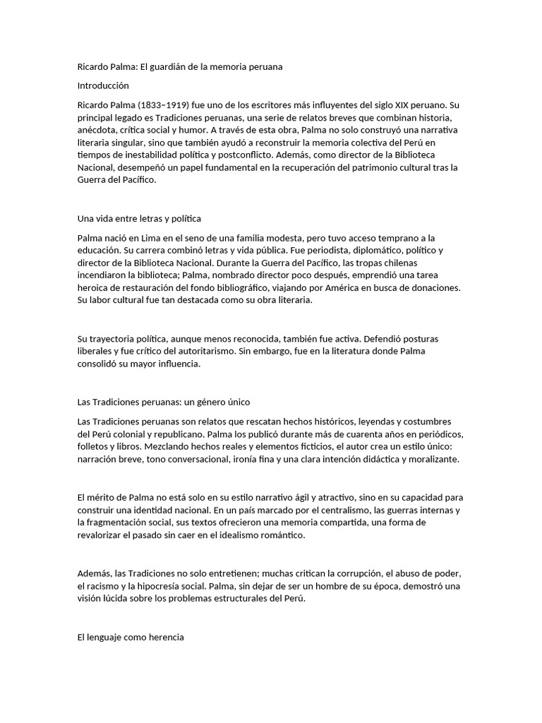 Ricardo Palma: El guardián de la memoria peruana