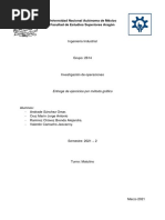 11.- Un vivero desea aadir rboles frutales y arbustos orientales a sus cultivos existentes. Los rboles proporcionan 14 dlares por unidad. Cada rbol requiere de 2 metros cuadrados para exhibicin, mientras que cada arbusto necesita de tres metros cuadrados, adems, el tiempo necesario para preparar un rbol para exhibicin es de dos minutos, mientras que el que se requiere para cada arbusto es de un minuto. Las restricciones de espacio y tiempo son las siguientes: Hay a lo ms 12 metros cuadrados para exhibicin disponible. Se dispone a lo mucho de 8 minutos de tiempo de preparacin. Si el vivero puede vender todos los rboles y arbustos en exhibicin. Cuntos rboles y cuantos arbustos deber exhibir diariamente para maximizar su ganancia?. (Suponga que es posible preparar una exhibicin solamente una vez al da) 1.- variables de decisin [Link] Arbustos 2.- funcin objetivo Z(MAX)= 3.-Restrcicciones 2X1 + 3X2 12 2X1 + X2 8 X1 X2 0 4.-Grfico de ecuaciones