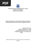 empresa, con supervisin de un profesor tutor de la Universidad Latina de Costa Rica, con una duracin de tres meses. Se va a desarrollar el diseo de una arquitectura de gestin de tecnologa usando la metodologa TOGAF y como referencia las normas de buenas prcticas abiertas y libres de uso como lo es la norma ITIL muy popular para el mejoramiento de la gestin de tecnologa, como ITIL es demasiado extenso con el fin de delimitar el alcance del proyecto, se utilizar el rea de la administracin de servicios constituido con la las funciones de help desk, control de incidentes, control de problemas, control de problemas, control cambios, y administracin de la configuracin.