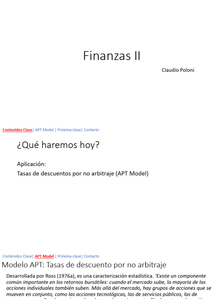 El cual es el modelo APT. Señala que la tasa de descuento por NAP es una suma ponderada