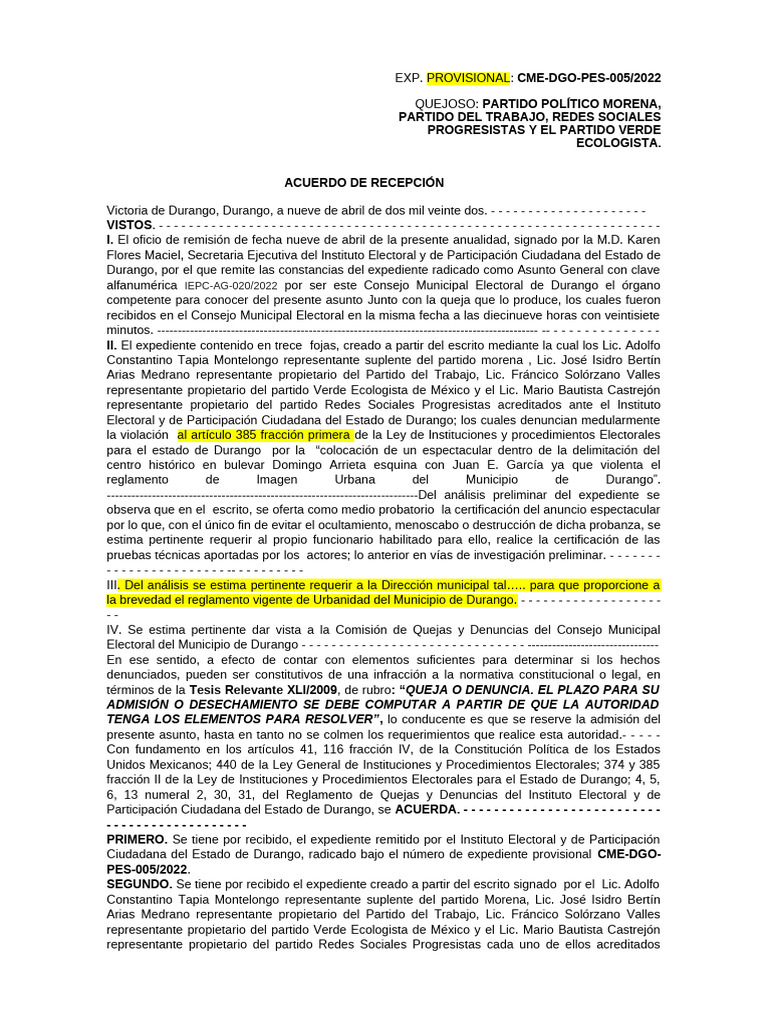 expediente provisional CME-DGO-PES-005/2022. - - - - - - - - - - - - - - - - - - - - - - - - - - - - - - - - - - - - -